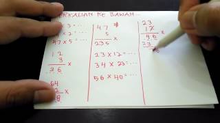 Cara perkalian ke bawah adalah cara paling umum untuk mengalikan suatu angka. Di video ini perkalian angka yang di bahas adalah perkalian 2 angka ...